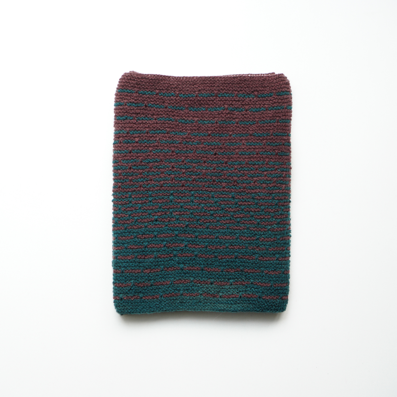By playing with the proportions of two colors, the design creates a smooth, flowing gradient within a simple, steady rhythm. There are no complicated techniques or intricate stitch patterns—just basic knits, purls, and slipped stitches. It’s an easy, relaxing project that still gives you a really eye-catching result.