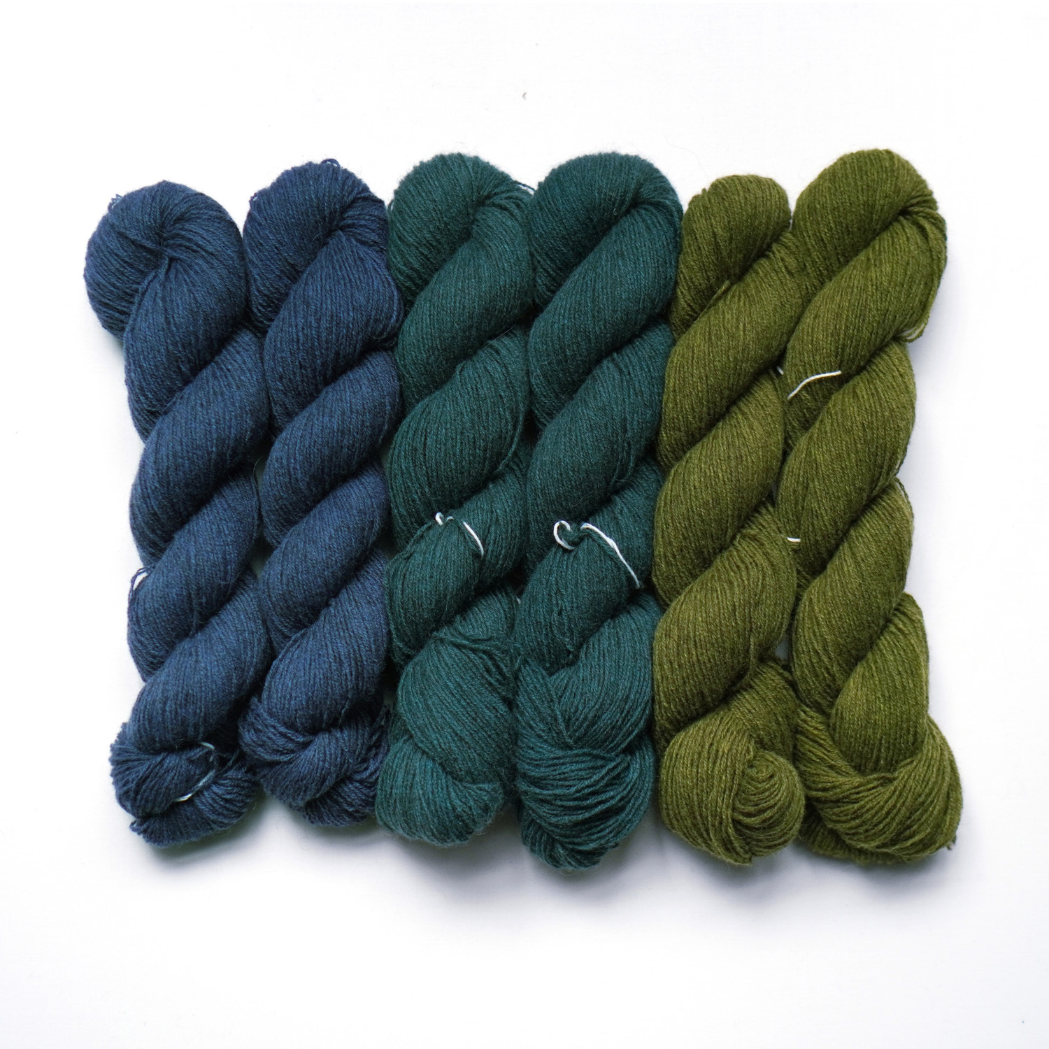 左至右|雪怪影子X2絞、 綠松石X2絞、地毯苔X2絞