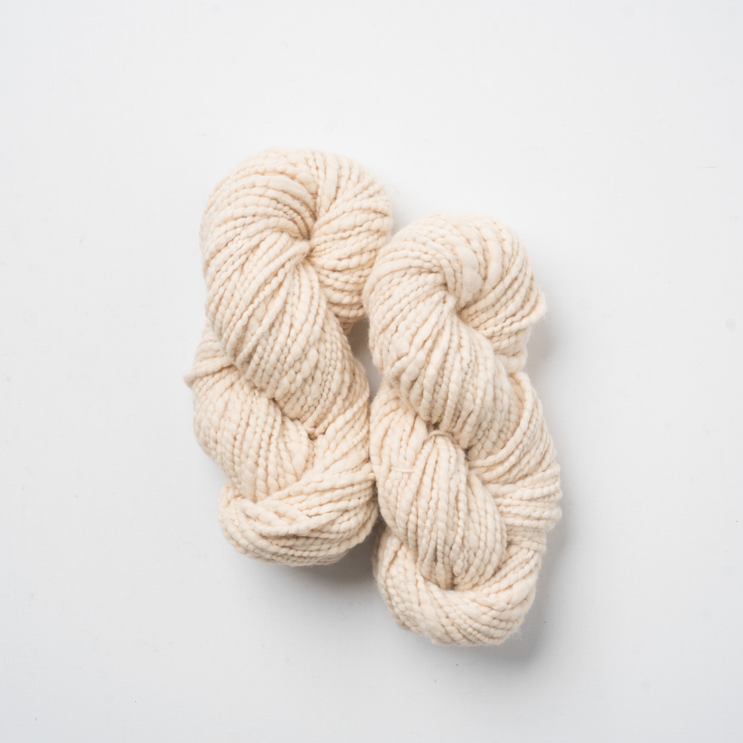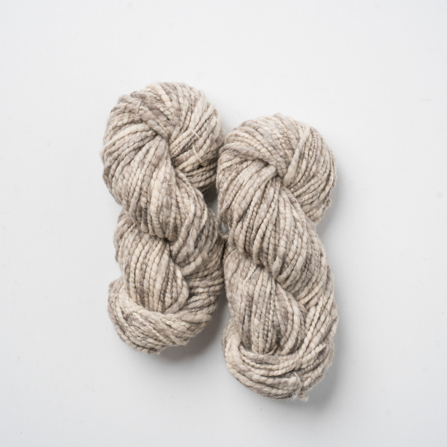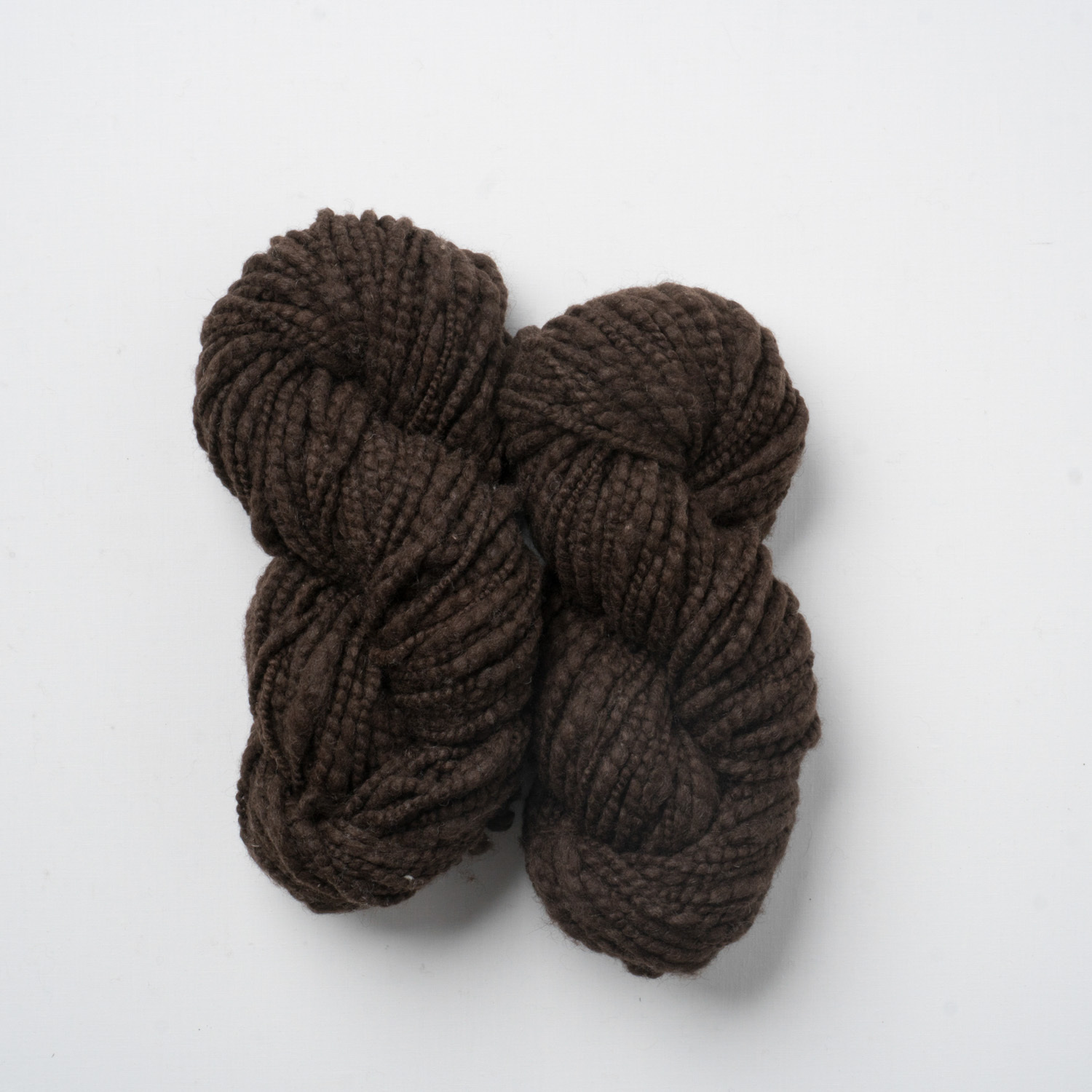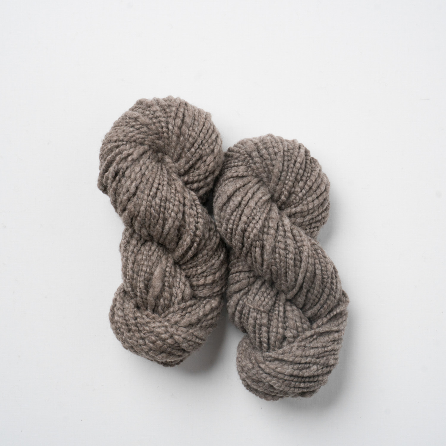 這一款線在捻的時候故意做有粗有細的變化,加上合上第二股細棉線,造成一種像是螺旋麵的顆粒蓬鬆感,剛好可以展現出犛牛絨細軟的一面。粗線可以讓你快速完成作品,又享受到作品柔軟獨特的質感。