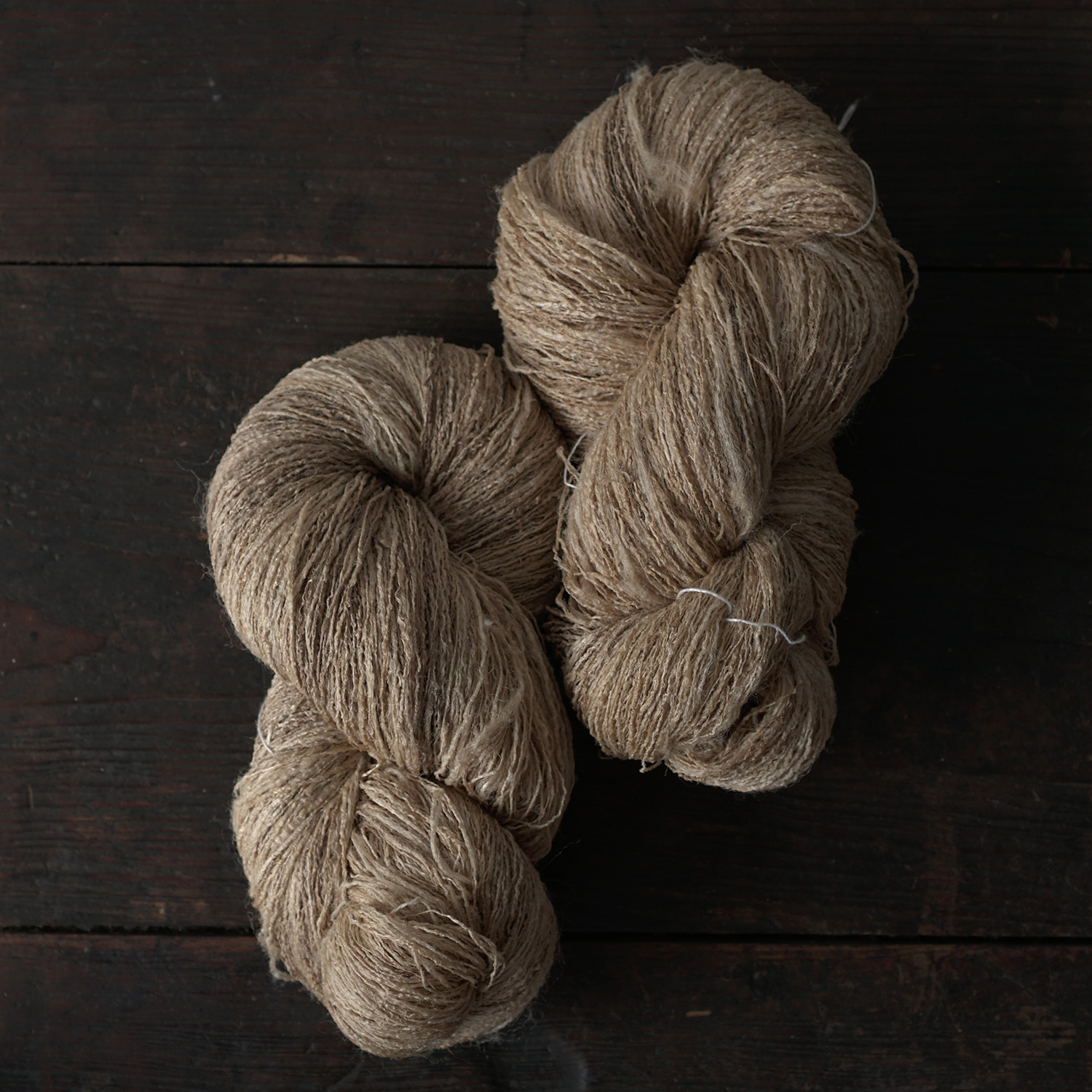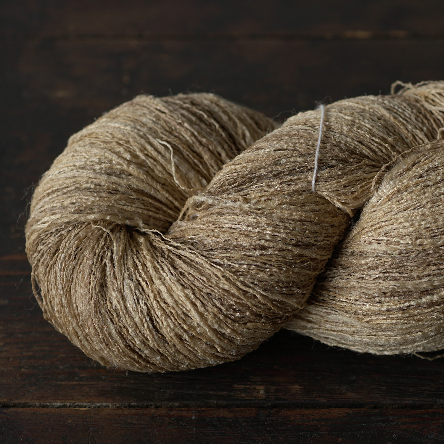 Ghicha絲線其實也是一種Tussar絲線,只是它是由在長纖而完整的絲被抽取後留下、還未染色的較短纖絲。還有一說是它是讓成蛾先離開繭後才取絲的,而非在蛾還未破繭而出時就直接取絲,是一種較為動物友善的線材,但也因為繭有破口,其纖維長度會比較短且光澤較不明顯。它類似羊毛的微小捲曲波紋讓它自帶一種特殊的質地,織布起來格外迷人。
