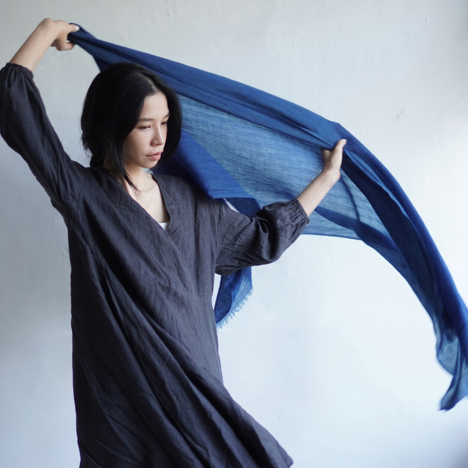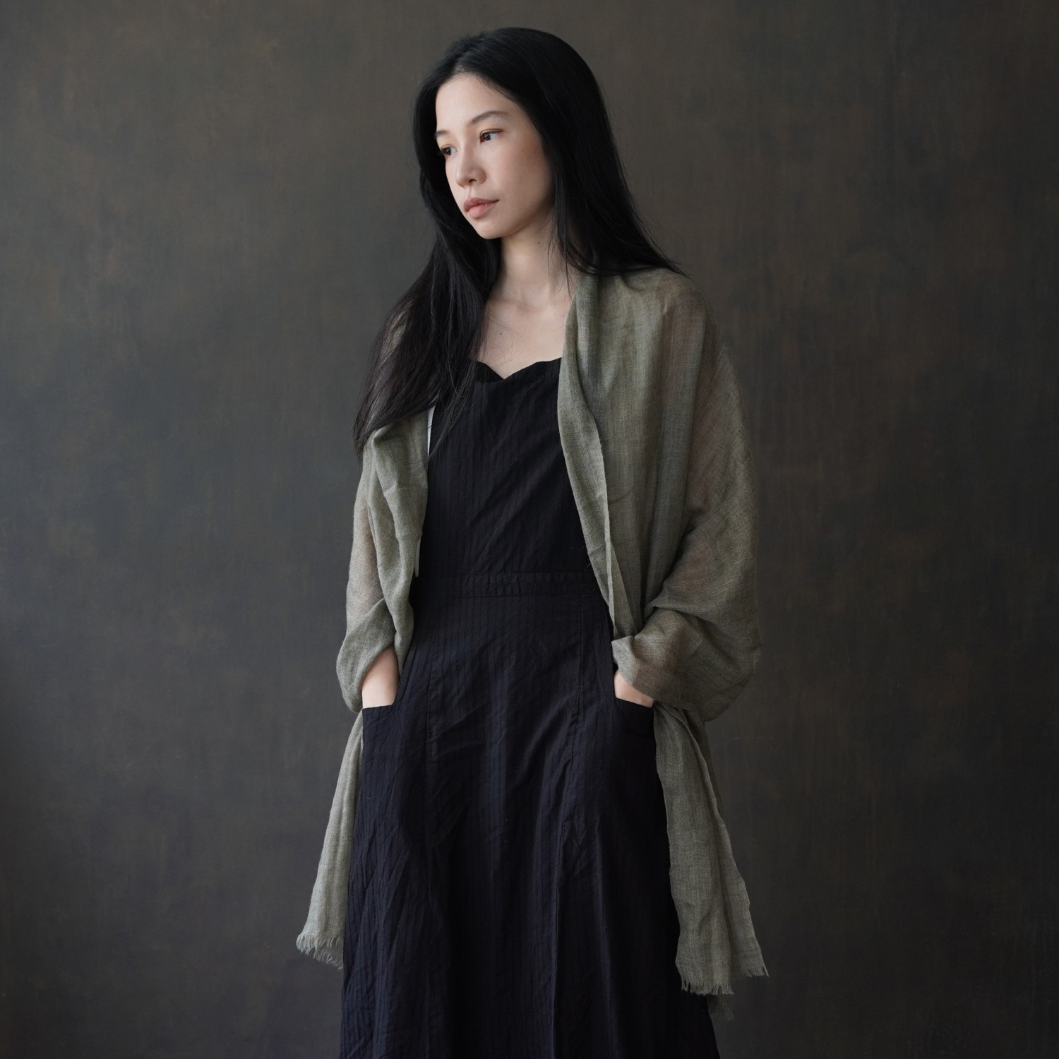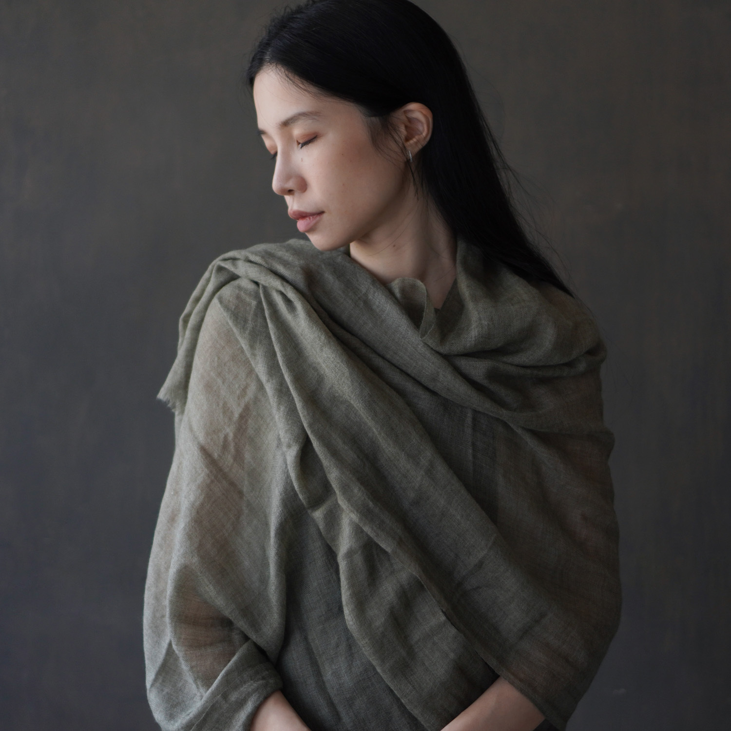 輕盈卻具有保暖的效果,寬幅70公分的輕薄披肩,日常中容易攜帶收納,在台灣夏日的室內能輕鬆的抵禦冷氣。