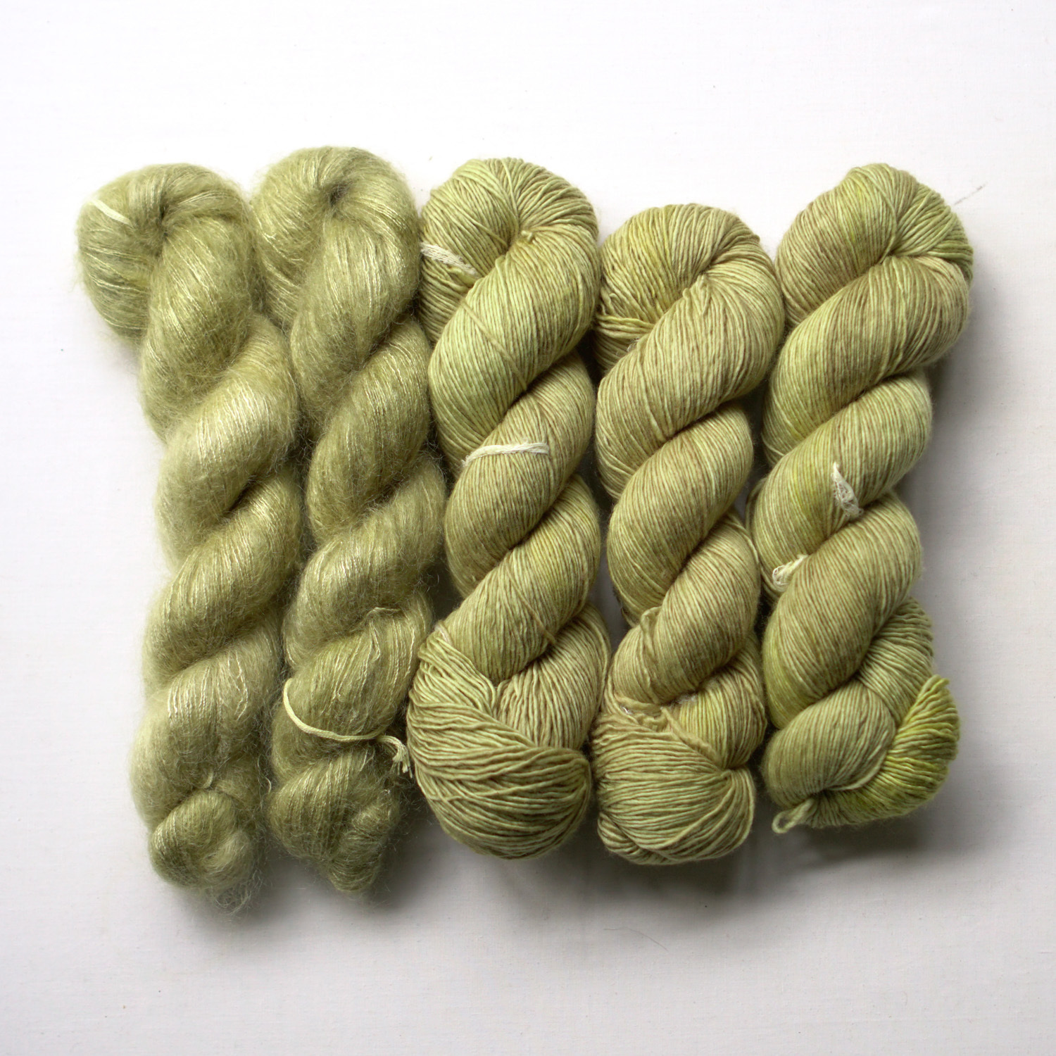 不同粗細、成分、特性的線材,適合打什麼樣的作品都不一樣。而同樣的顏色,染在不同的線材種類上,顏色表現也會有所差異。