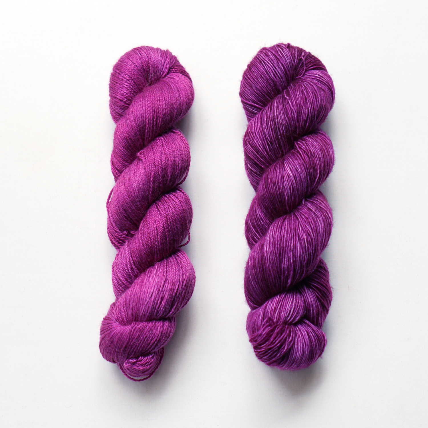 不同粗細、成分、特性的線材,適合打什麼樣的作品都不一樣。而同樣的顏色,染在不同的線材種類上,顏色表現也會有所差異。