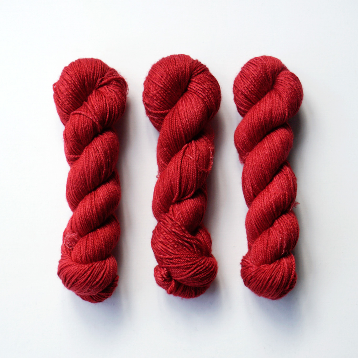 不同粗細、成分、特性的線材,適合打什麼樣的作品都不一樣。而同樣的顏色,染在不同的線材種類上,顏色表現也會有所差異。