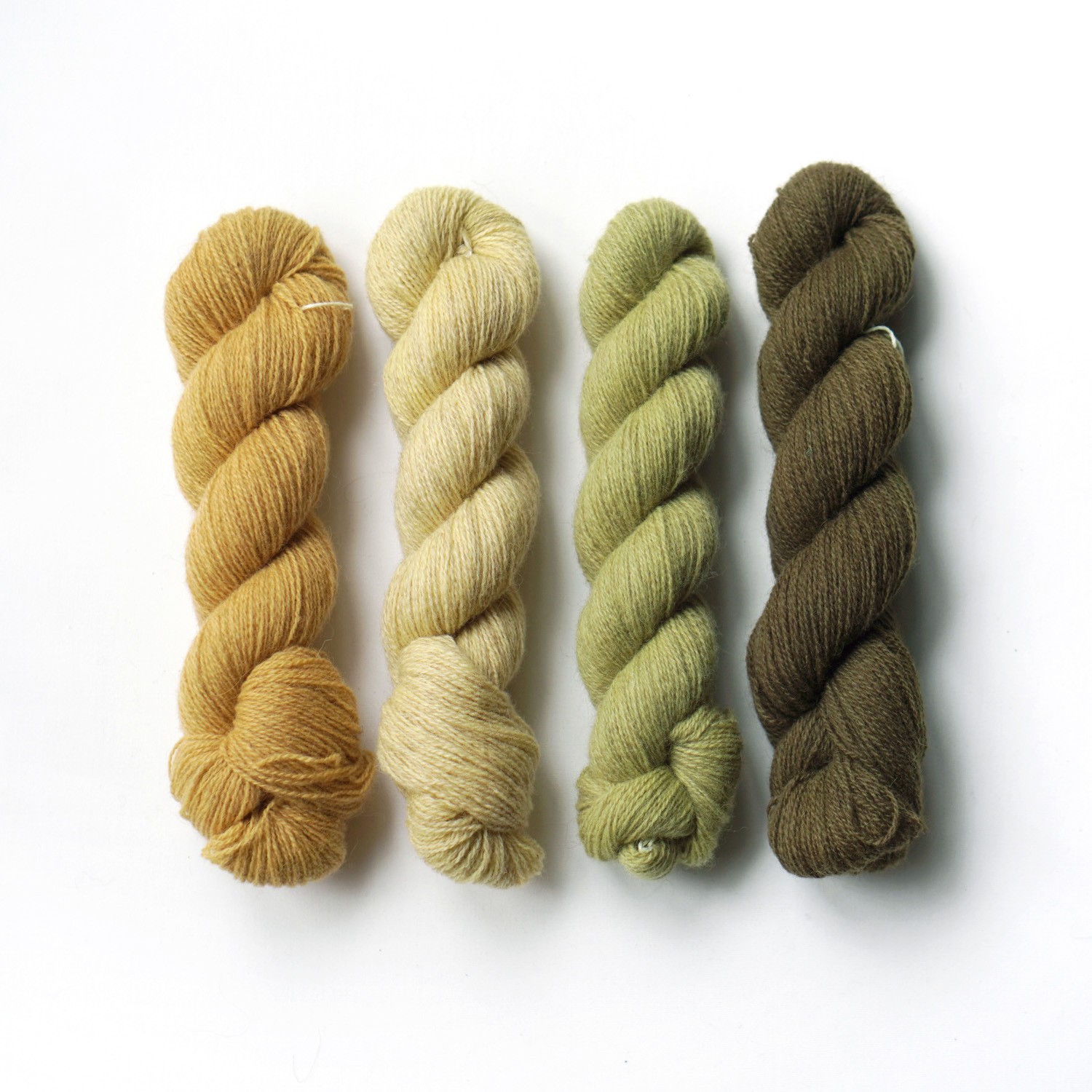 這是一款粗紡(woolen spun)的羊毛線,保留了羊毛自然的捲曲與纖維間的空氣。線體蓬鬆而輕盈,未經漂白的原毛仍混著細微的灰與白,讓整個系列的色澤,都透出一種略帶溫度、霧樣的朦朧感。