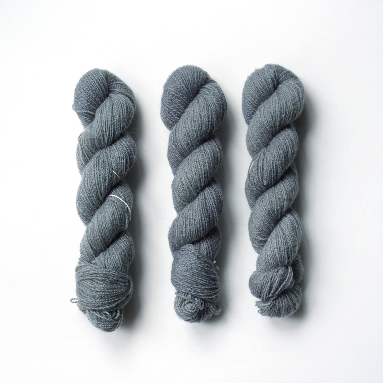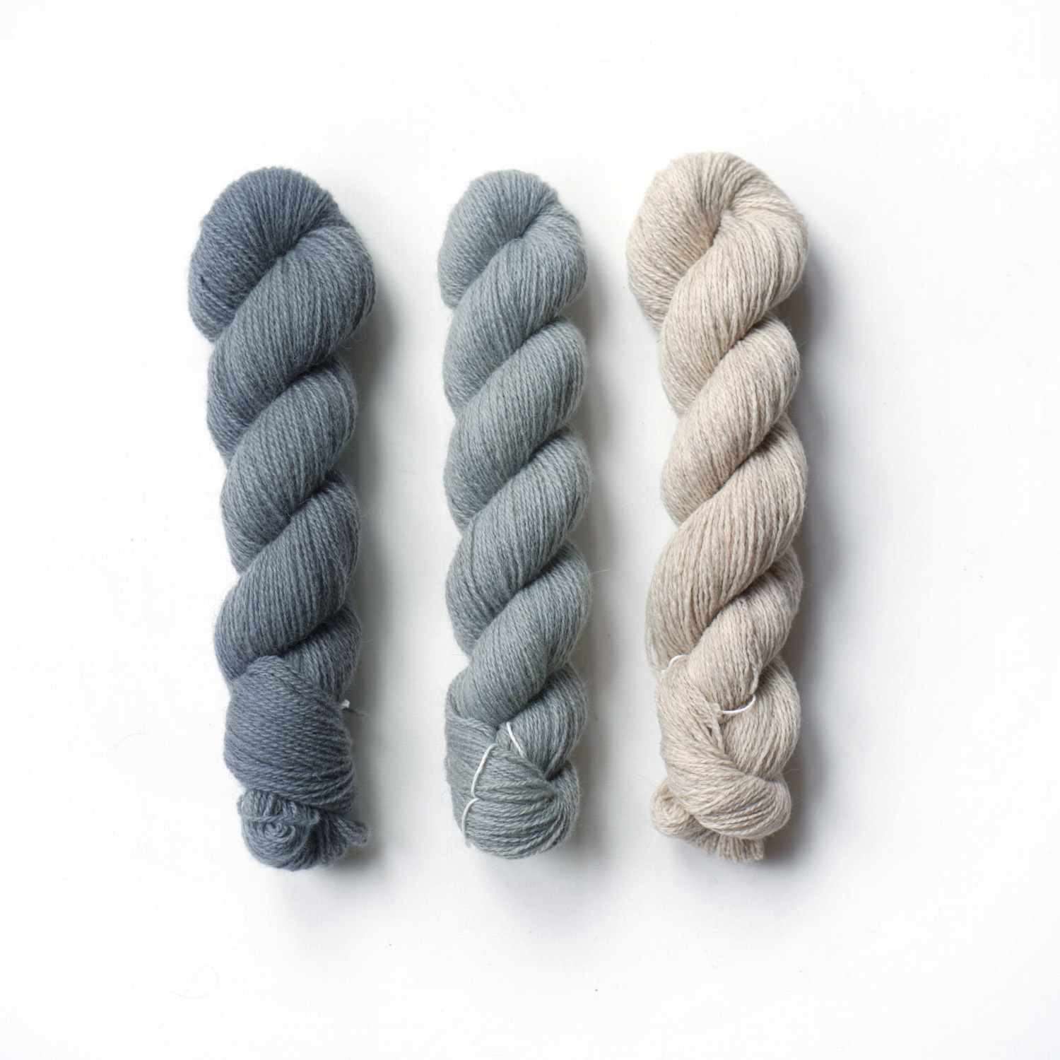 這是一款粗紡(woolen spun)的羊毛線,保留了羊毛自然的捲曲與纖維間的空氣。線體蓬鬆而輕盈,未經漂白的原毛仍混著細微的灰與白,讓整個系列的色澤,都透出一種略帶溫度、霧樣的朦朧感。
