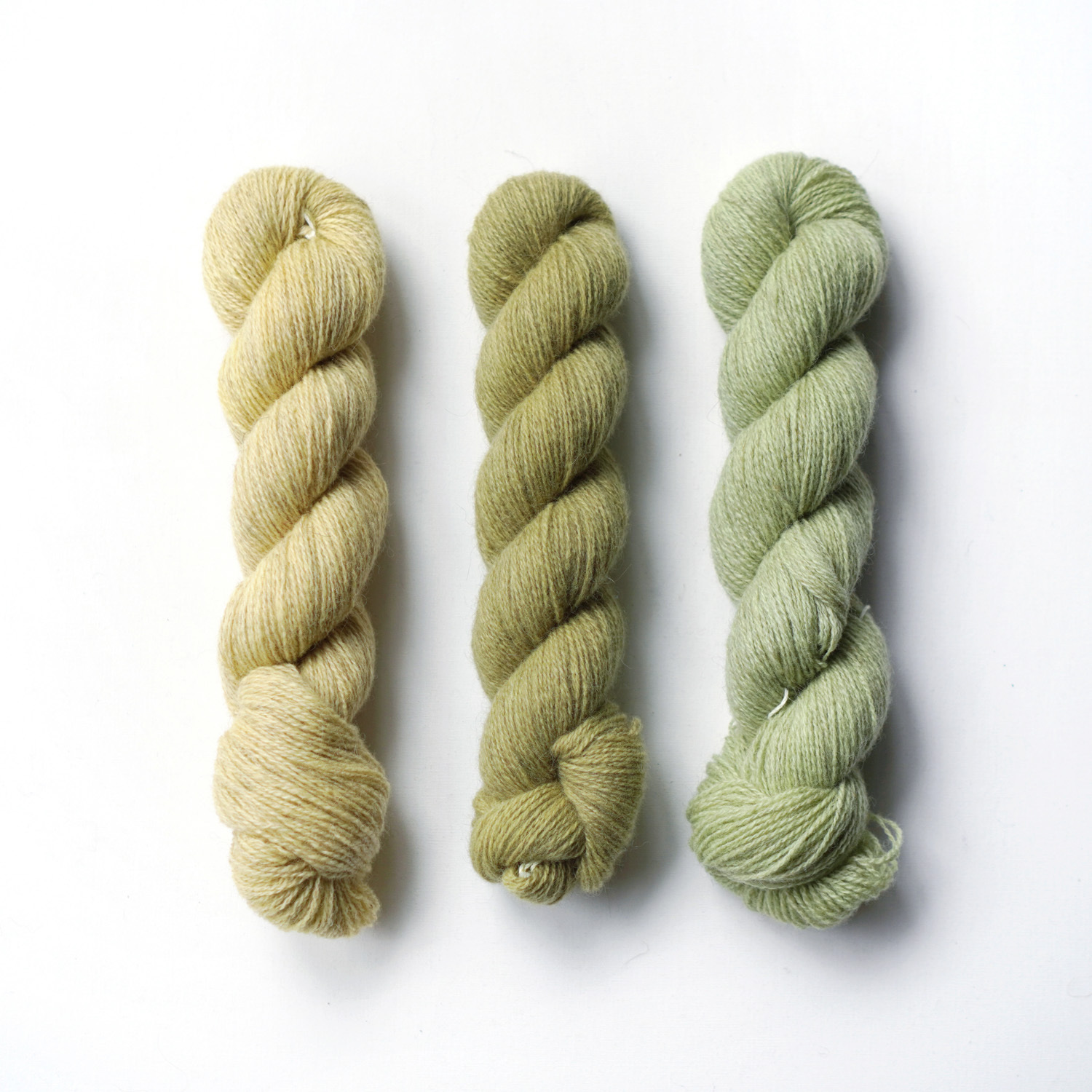 這是一款粗紡(woolen spun)的羊毛線,保留了羊毛自然的捲曲與纖維間的空氣。線體蓬鬆而輕盈,未經漂白的原毛仍混著細微的灰與白,讓整個系列的色澤,都透出一種略帶溫度、霧樣的朦朧感。