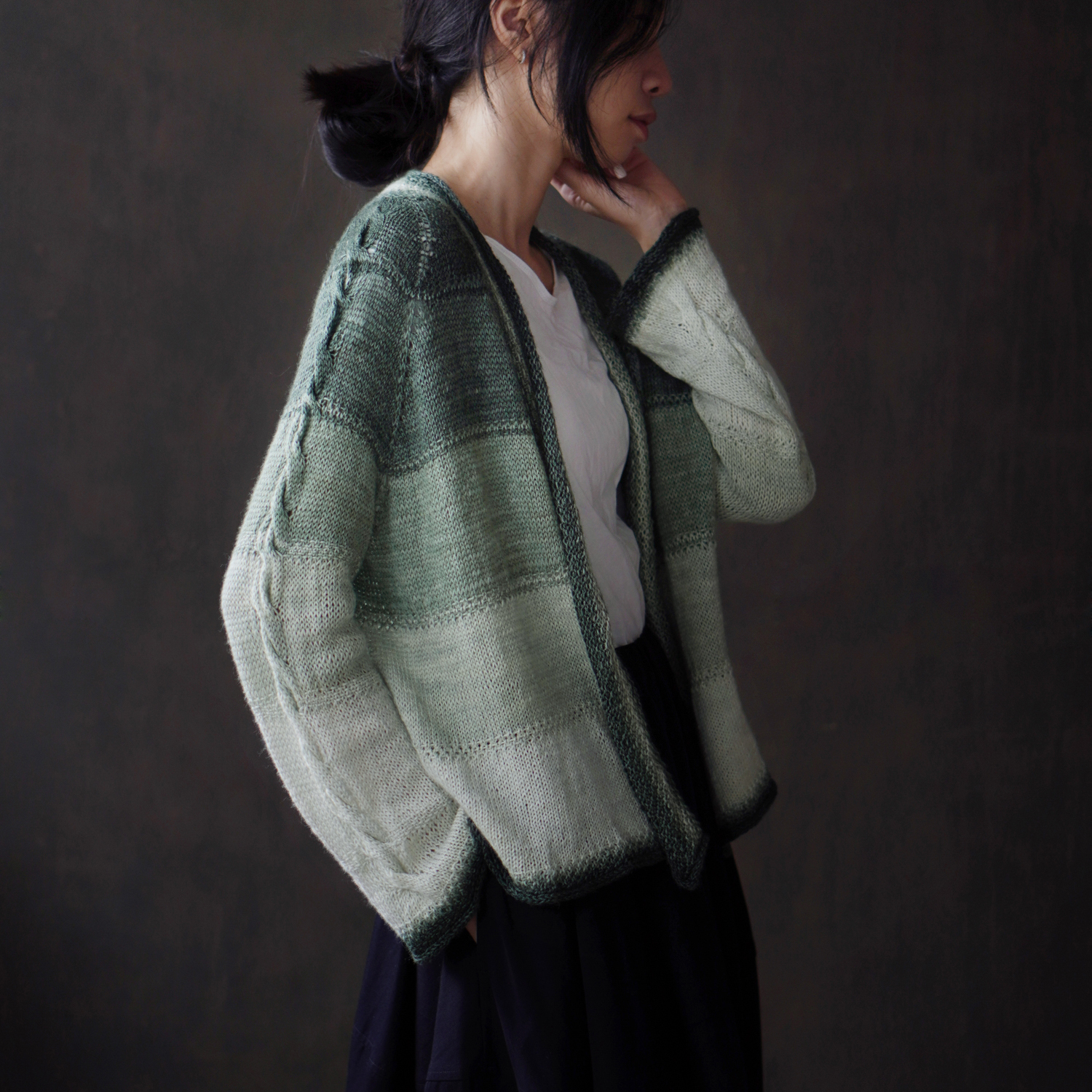 Kaii是一款從上往下編織的拉克蘭袖開襟衫,有兩個版本:BFL 和 Fade。