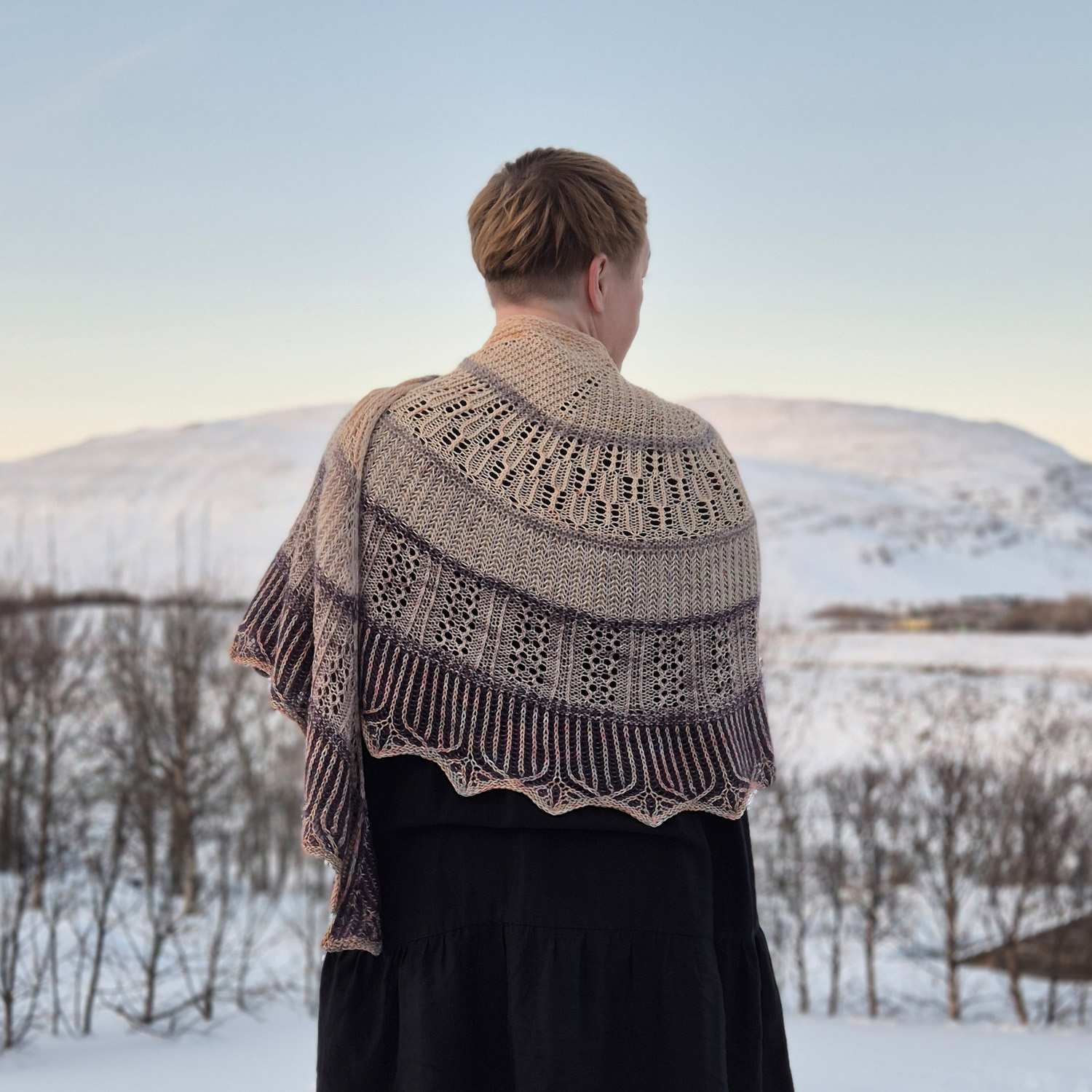 來自冰島的設計師Brynja Björk有許多精彩的披肩作品,這條披肩是從領口開始向下編織,披肩的設計適合使用兩種顏色,也可以隨意搭配多種你想要的顏色。