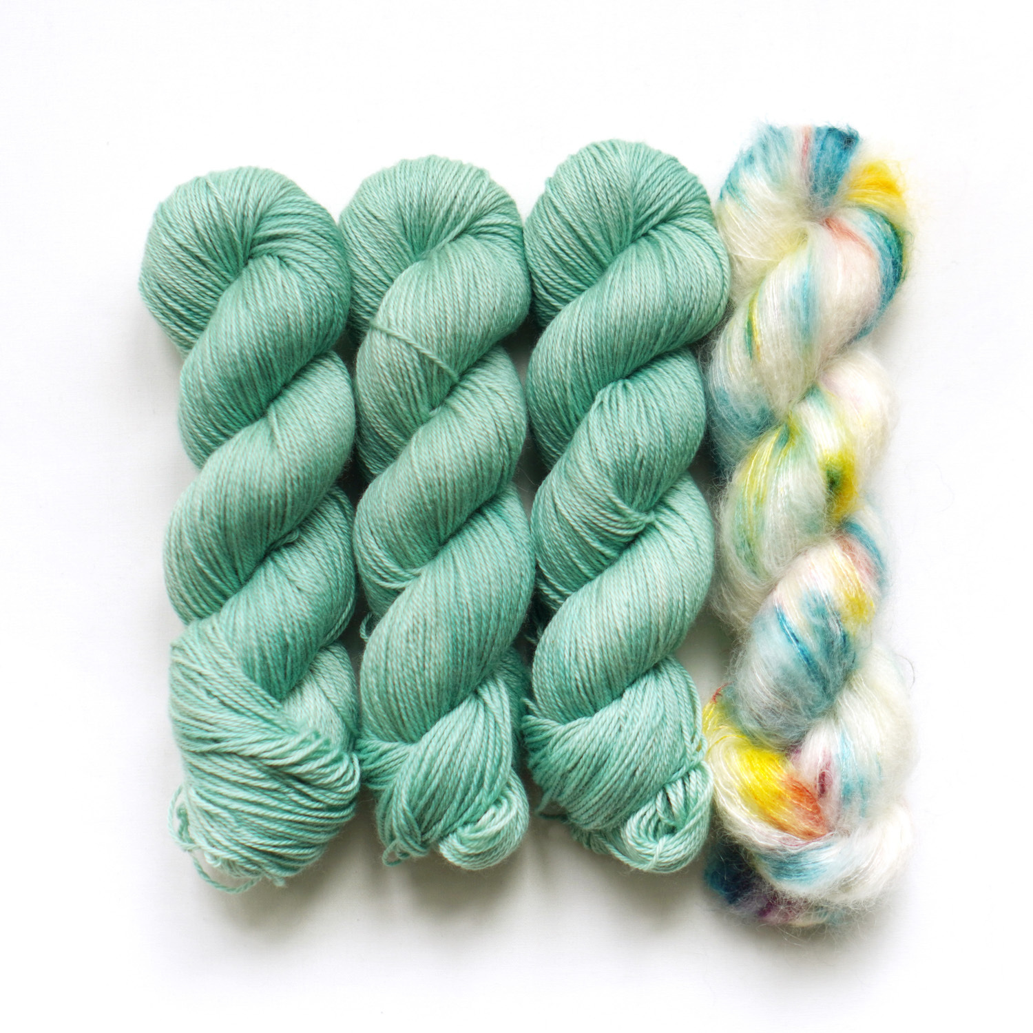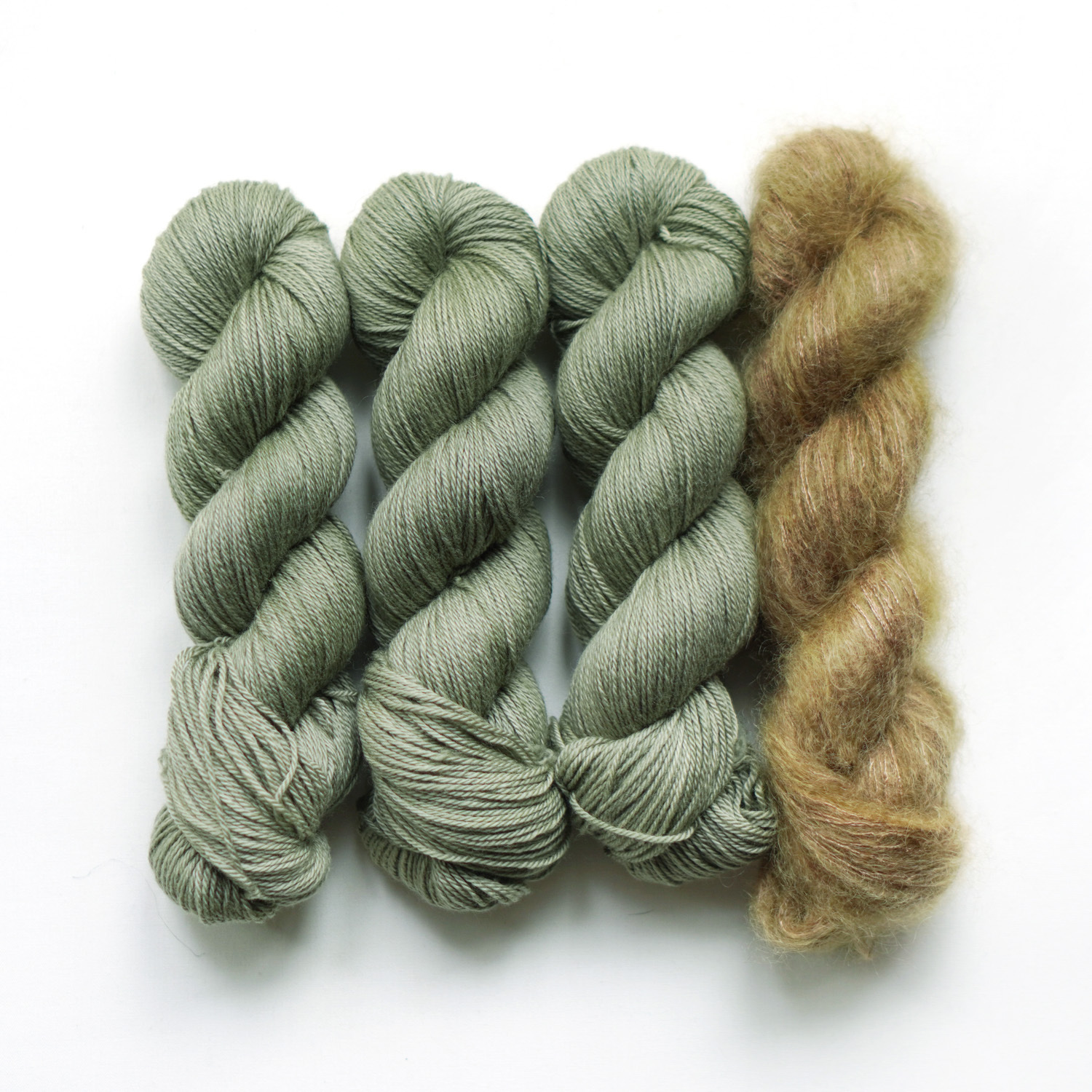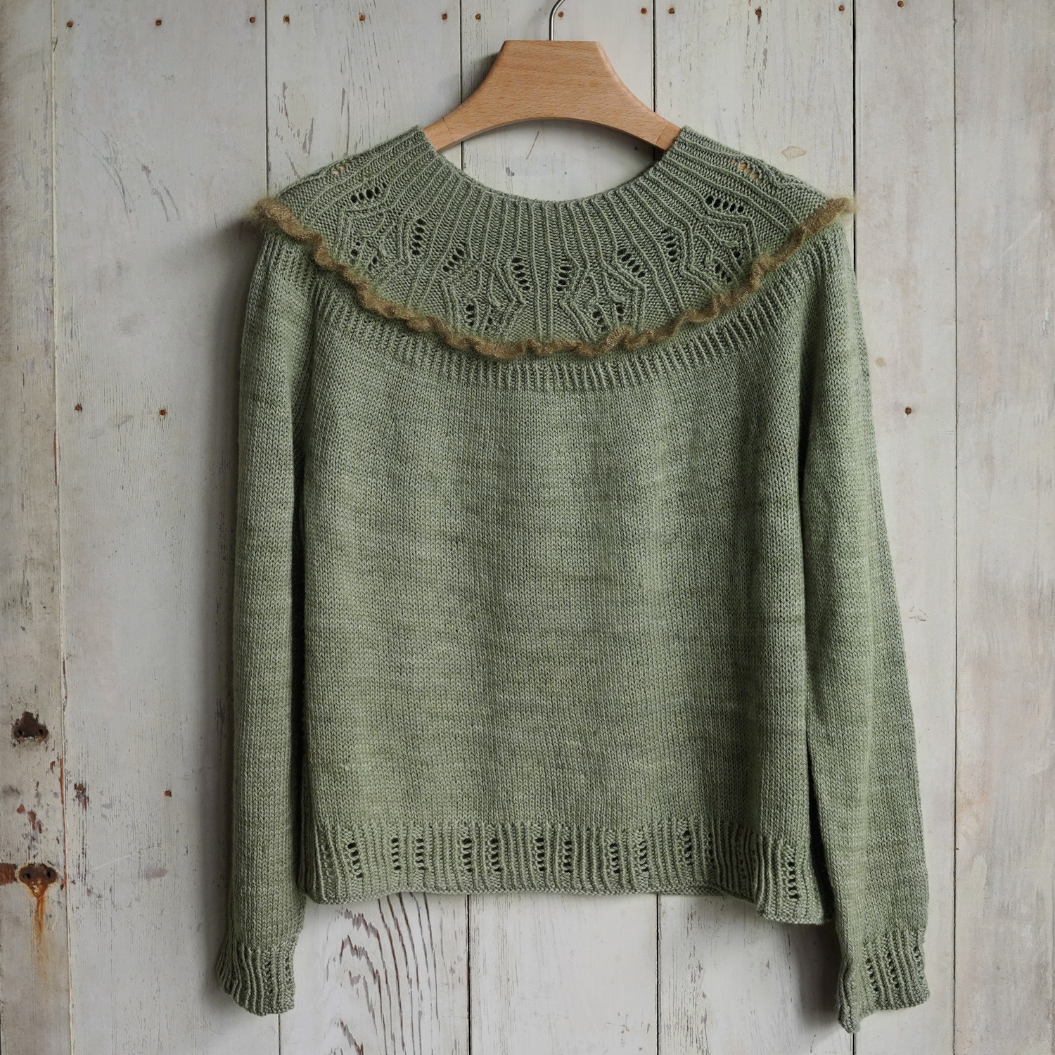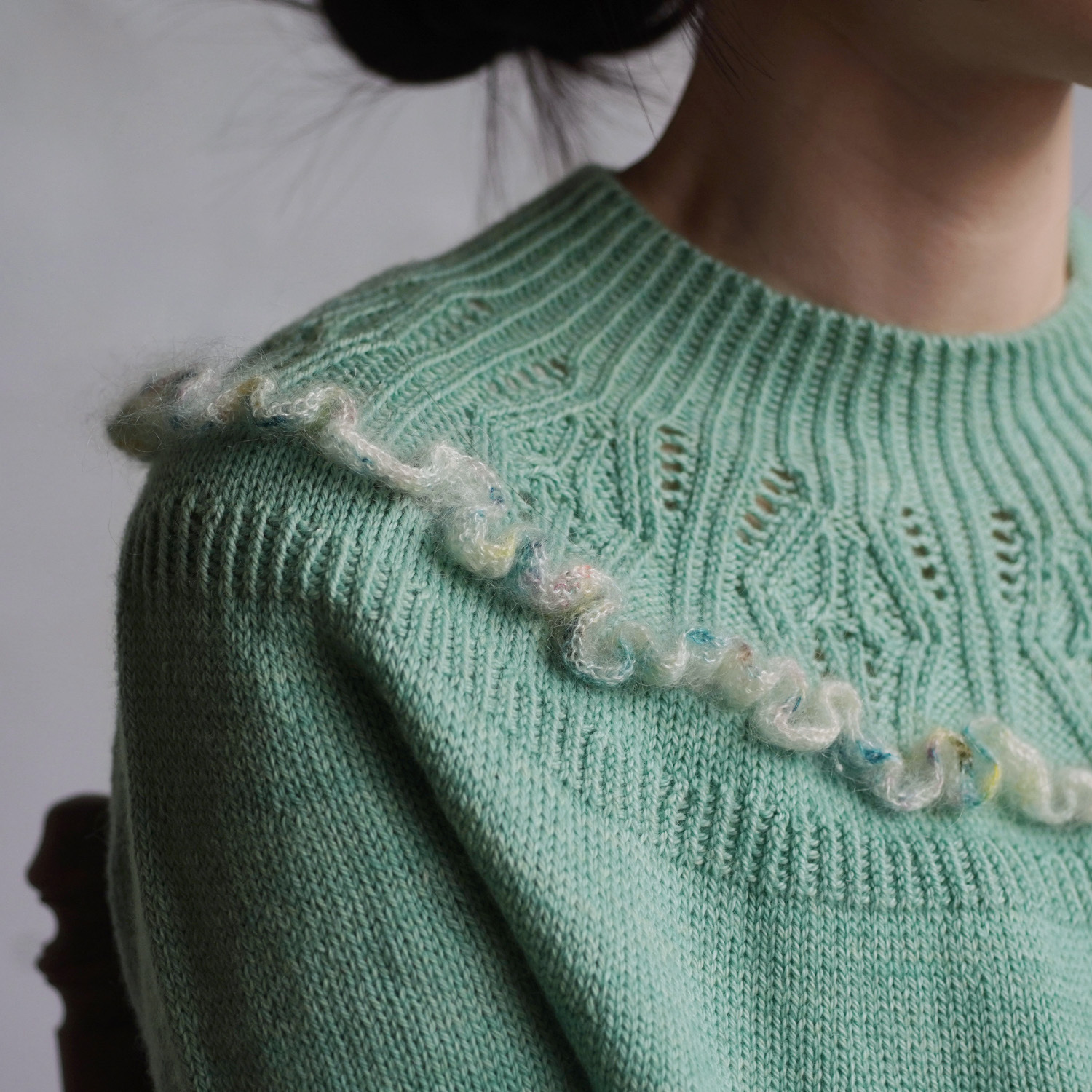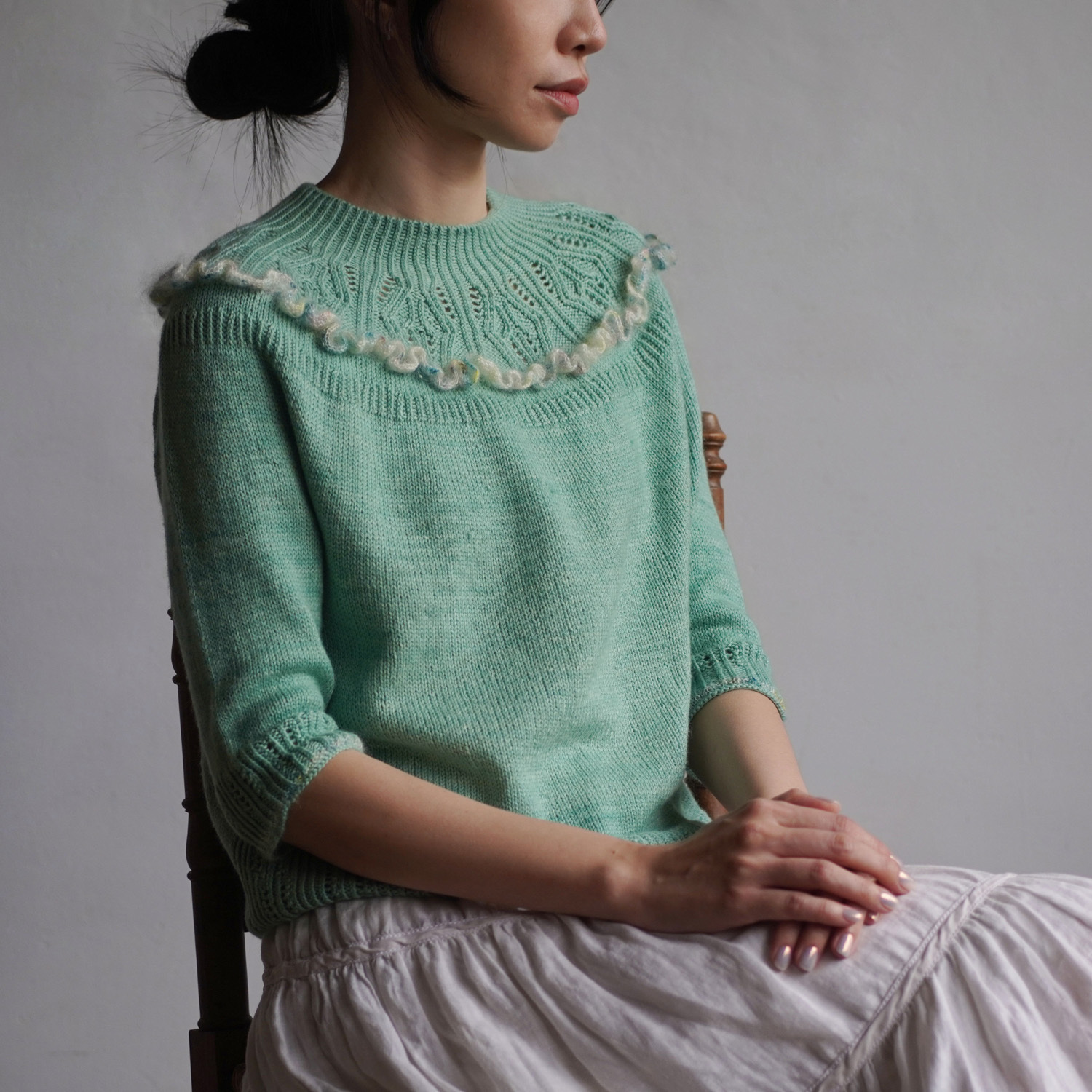 Parnassia Pullover版本 : 犛牛美麗諾 100g 3-8絞 、絲毛海 10g 1-2絞(視尺寸而定)