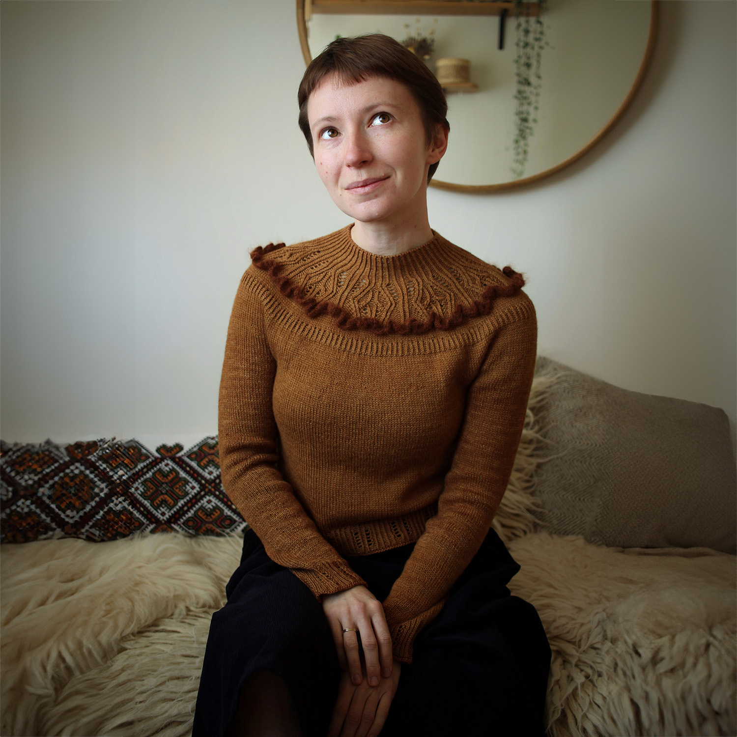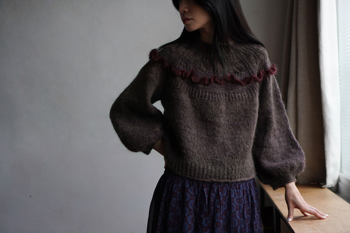 Parnassia針織毛衣採用自上而下的圓形編織方式,無縫編織讓肩膀處的線條緊密貼合,展現出細緻的花瓣狀圖案。