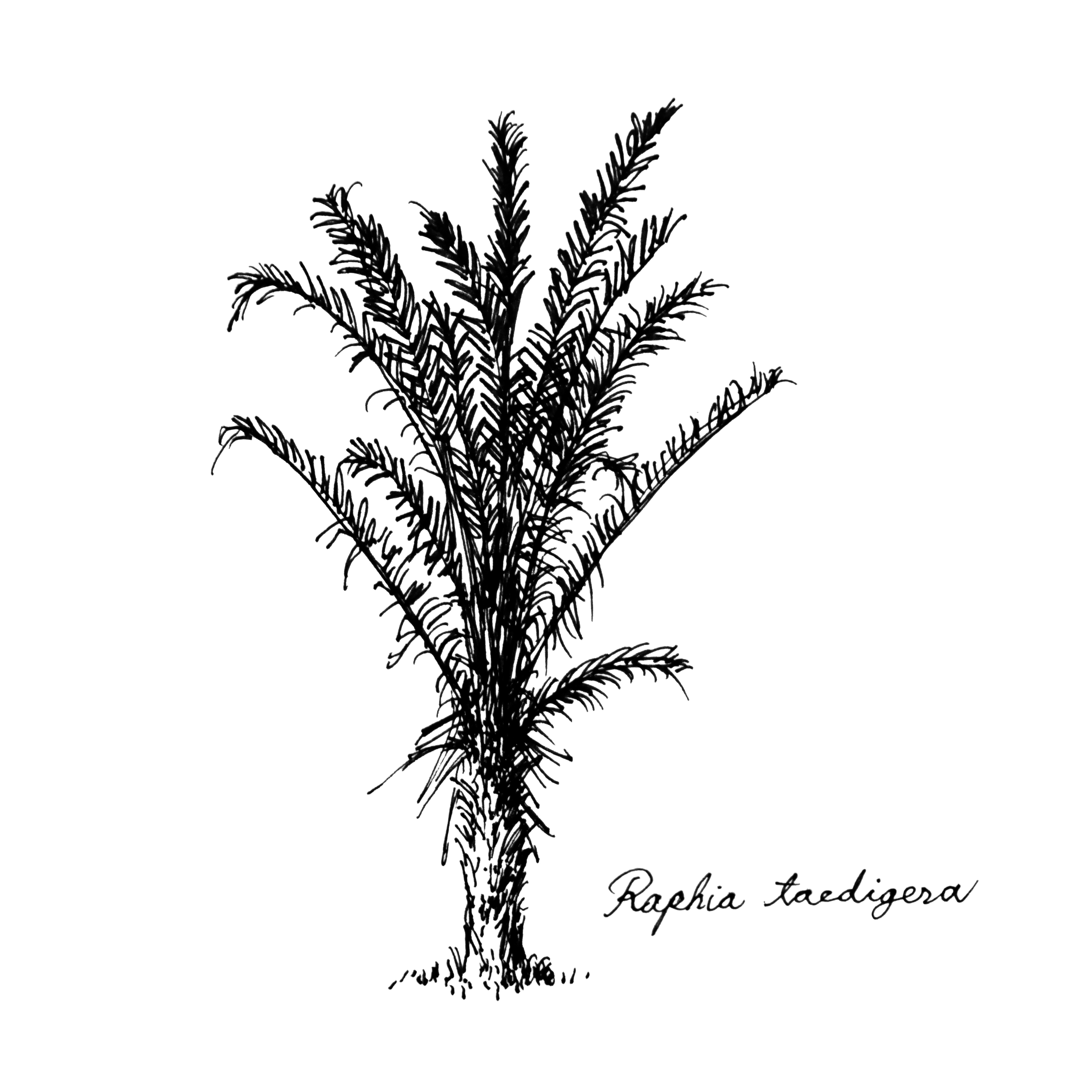 葛拉菲草其實不是一種草,而是一種巨大的棕櫚樹:拉菲亞棕櫚樹 (Raphia taedigera) 的葉脈纖維。它可以長到 16 公尺高,而它的羽狀複葉更是植物界最巨大的。