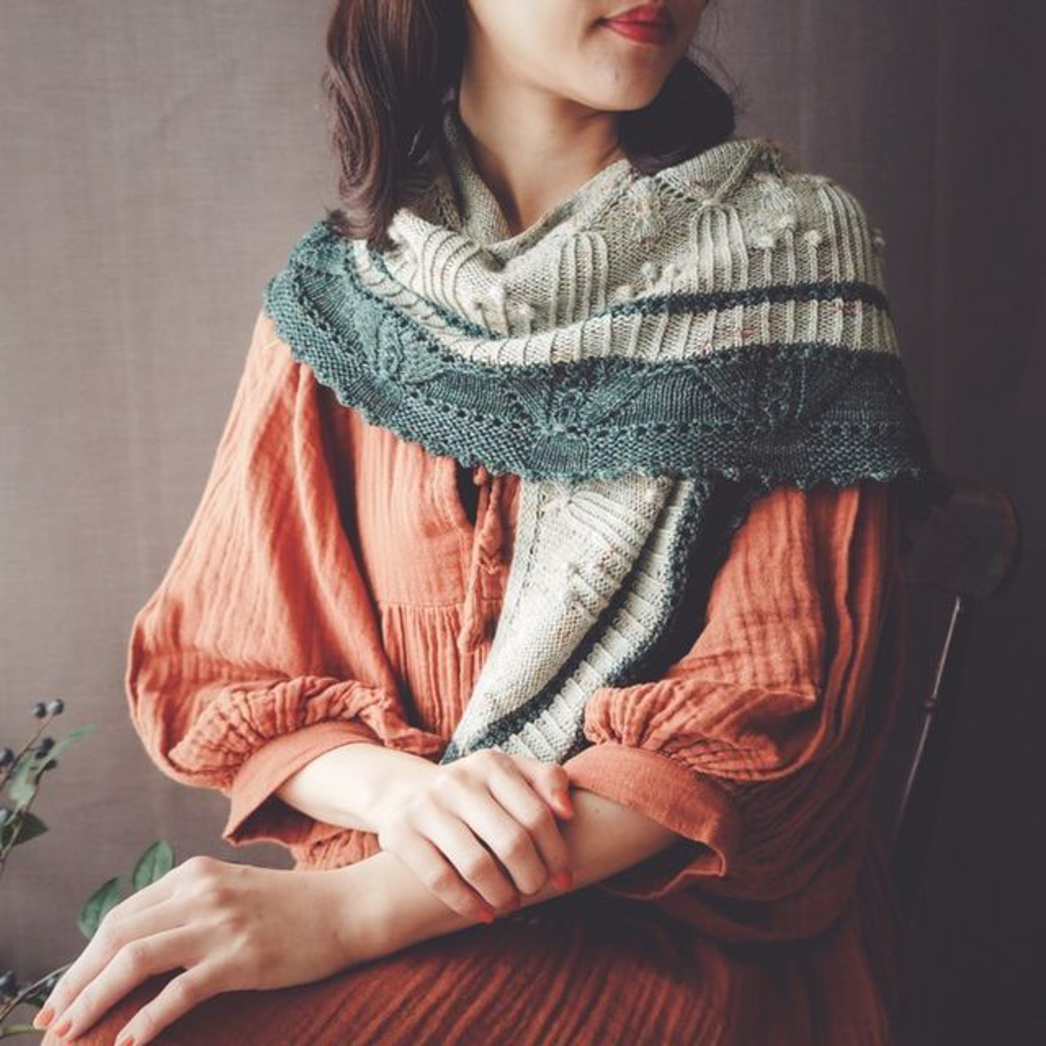 披肩使用北方牧人的犛牛美麗諾手染線,為Tassy 披肩賦予柔軟、溫潤的純動物纖維觸感。