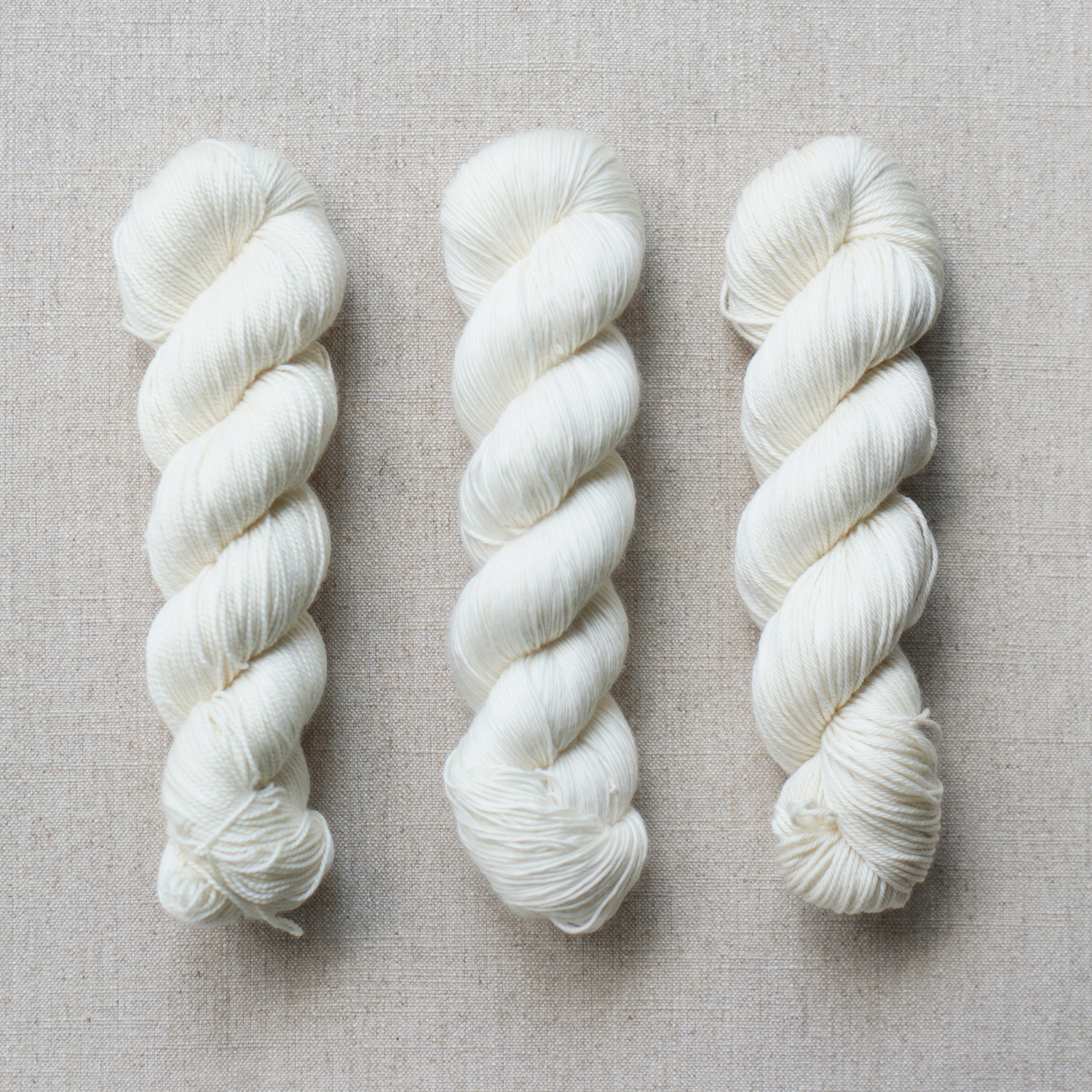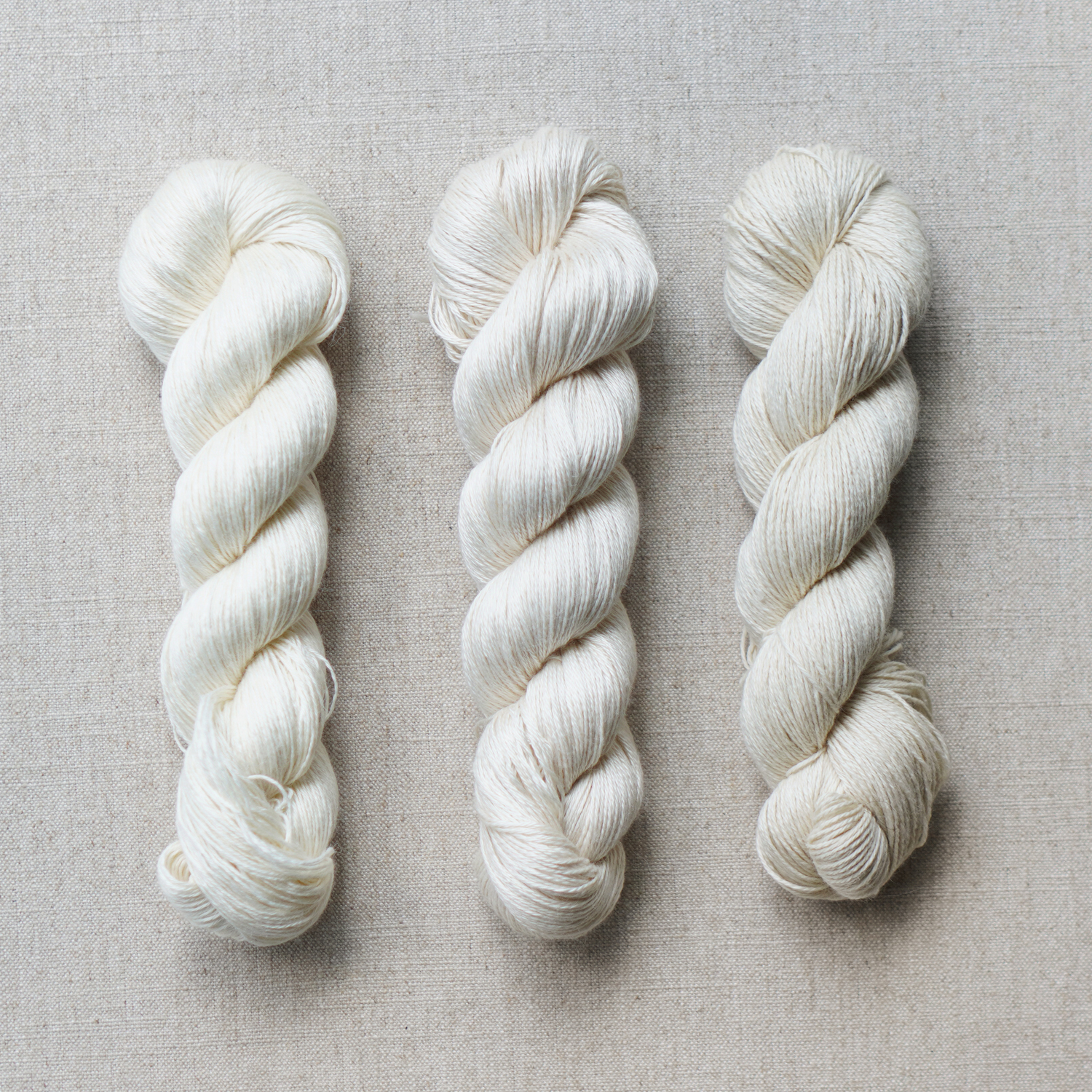 不同粗細、成分、特性的線材,適合打什麼樣的作品都不一樣。雖然都是原色未染線,但會因不同纖維成分,而有些微的顏色與光澤差異。